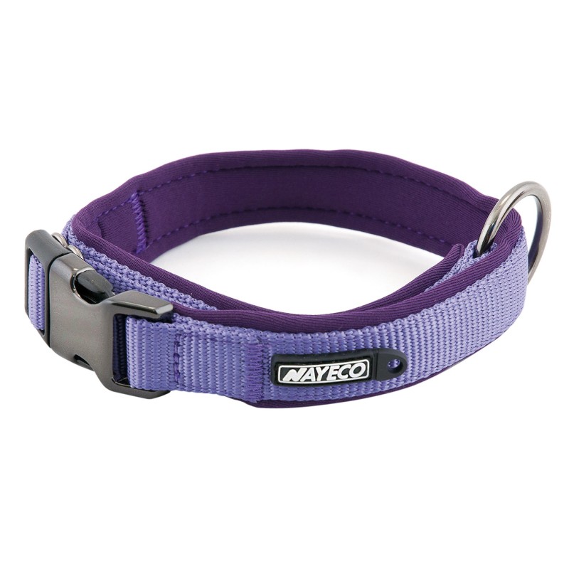 Bequemes Halsband aus Nylon und Neopren, zwei ausgesprochen widerstandsfähigen und bequemen Materialien. Die Verschlüsse in Anthrazitgrau und aus Metall sind hübsch und robust zugleich. Die äußerst weiche Innenseite aus Neopren schützt dein Haustier, während die Außenseite aus Nylon die notwendige Widerstandsfähigkeit für einen sicheren Spaziergang bietet. Erhältlich in drei Größen und acht verschiedenen Farben.