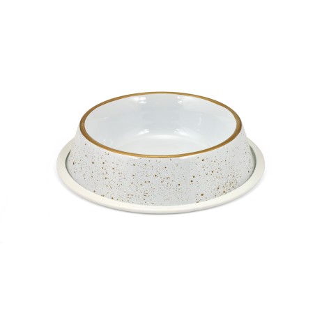 - Futterspender aus Edelstahl in Weiß und Gold, ideal für alle, die Wert auf Stil und Haltbarkeit legen.