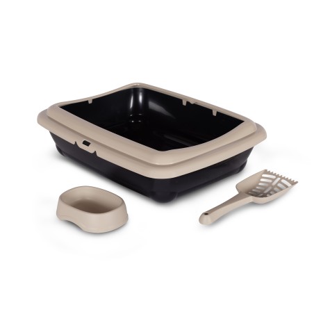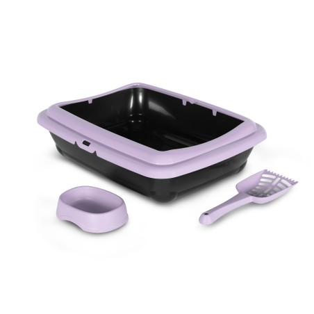 Special kit for the welcome of our kitten at home. Composed of a tray with frame, collecting shovel and feeder. Available in two different colors.