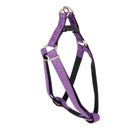 Harnais en similicuir avec imprimé en bas-relief. Fonctionnel, pratique et élégant. Rembourré pour plus de confort avec fermeture à clic rapide lors de l'enfilage et résistant. Rondelle d'attache réglable et métallique pour une plus grande durabilité et résistance. Disponible en six couleurs et quatre tailles.