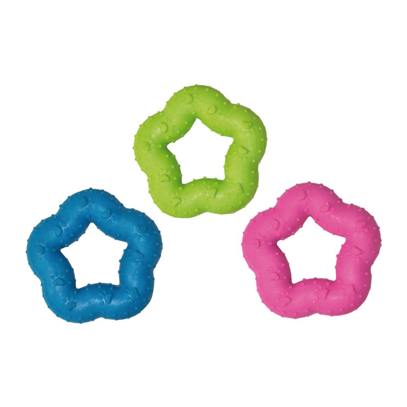 Fiore di gomma di 7 cm con spuntoni, pensato appositamente per le taglie di cani mini o i cuccioli. Materiale di grande durata con spuntoni in superficie per massaggiare le gengive durante il morso e contribuire all’igiene dentale dei nostri cani. Disponibile in tre colori.