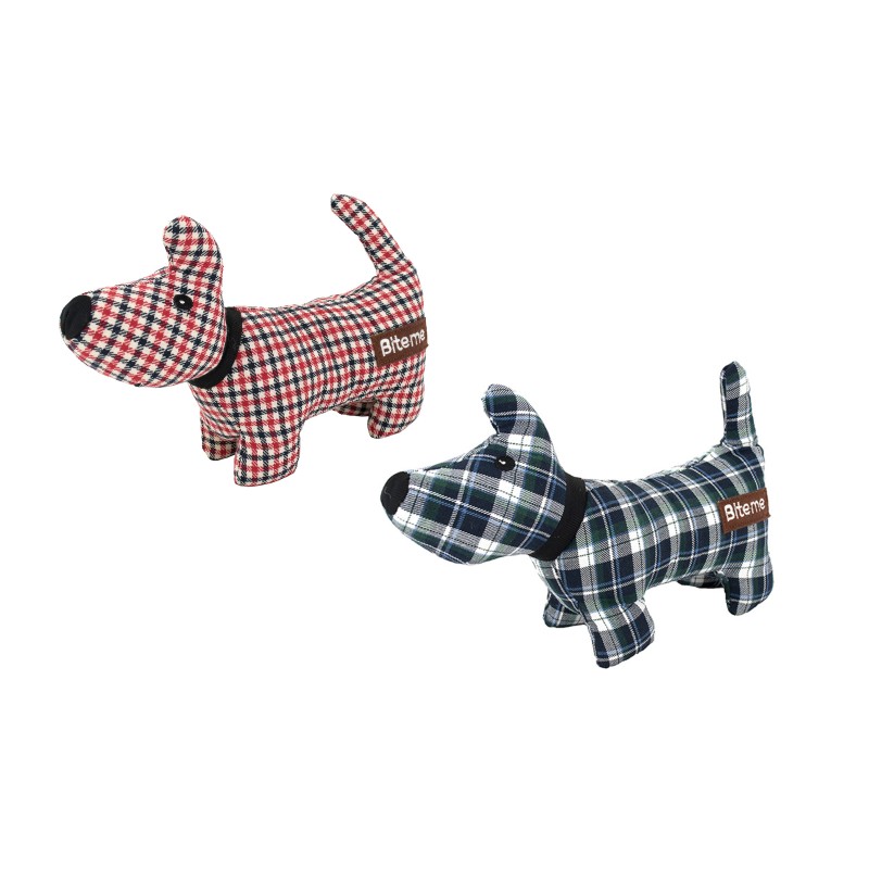 Elegante peluche a forma di cane. Prodotto con materiali di alta qualità e disponibile in due colori. Peluche sonoro, morbido e piacevole al tatto. 28 cm.