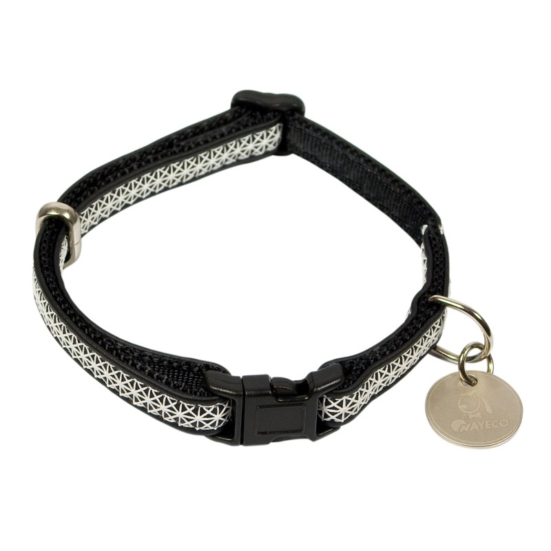 Colar em couro sintético com estampa branca moderna e contemporânea. Funcional prático e elegante. Fabricado com o máximo conforto do nosso animal de estimação durante o passeio. Com fecho de clique rápido na hora de calçar e resistente. Arruela ajustável e metálica para maior durabilidade e resistência. Disponível em duas cores e três tamanhos.