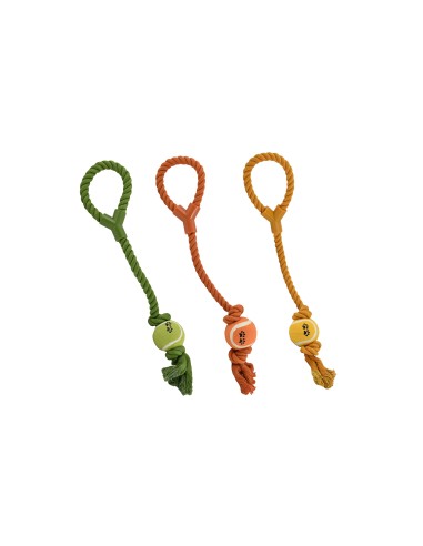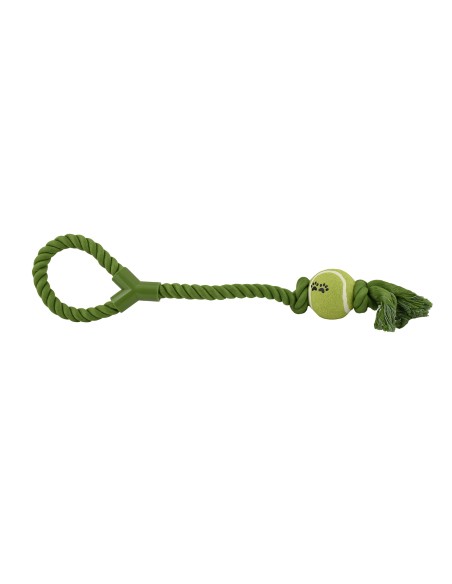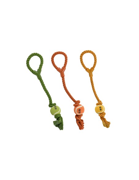 Brinquedo para cães confeccionado com materiais de alta qualidade e fios reciclados em seu interior. Com uma peça de plástico para maior resistência e ainda uma bola de ténis na extremidade para promover a brincadeira. Comprimento de 50cm. Disponível em três cores: verde coral e azul marinho, fortalece a mandíbula e contribui para a higiene dental do seu animal. Brinquedo ideal para brincadeiras de arremesso, busca, cabo de guerra, seu pet terá ótimos momentos de brincadeiras compartilhadas e também sozinho.