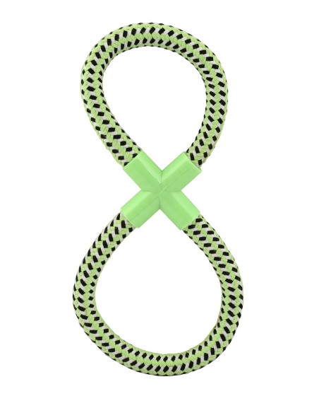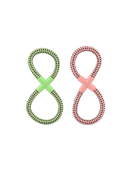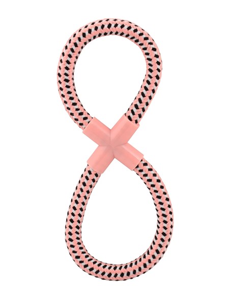 Brinquedo para cachorro em formato de oito, com peça de plástico na interseção para maior durabilidade e resistência. Tem 27cm de comprimento e está disponível em duas cores: rosa e azul.Feito com materiais seguros, resistentes e macios para não danificar os dentes do seu cão. Promove a higiene dental e ajuda a fortalecer a mandíbula do seu animal de estimação. Brinquedo ideal para brincar com um ou dois cães ao mesmo tempo, promovendo assim o exercício e a socialização da nossa mascote.