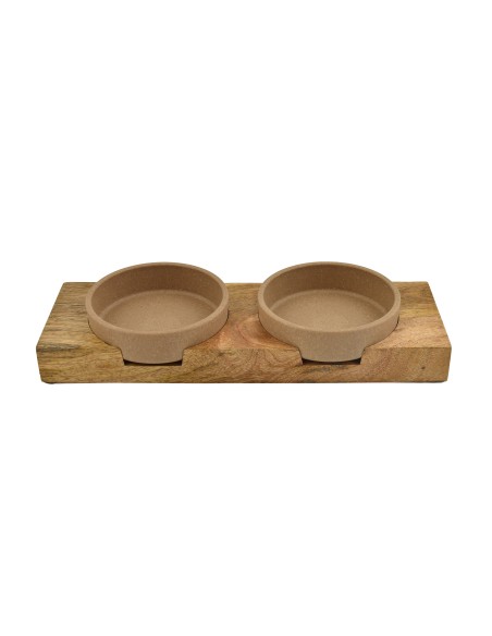 Se você procura um conjunto de comedouro e bebedouro para cães e gatos com design natural, este conjunto de bambu com suporte de madeira combina funcionalidade e estética. Inclui duas tigelas de bambu de origem sustentável (50% de material natural renovável), que oferecem resistência e durabilidade para o uso diário. O suporte de madeira de mangueira proporciona estabilidade e mantém as tigelas ligeiramente elevadas, promovendo uma posição mais confortável para comer e beber. É ideal para cães de pequeno porte, filhotes e gatos. Uma opção sustentável e funcional para manter a área de alimentação organizada e equilibrada. Dimensões: 13 cm de diâmetro x 5 cm de altura.