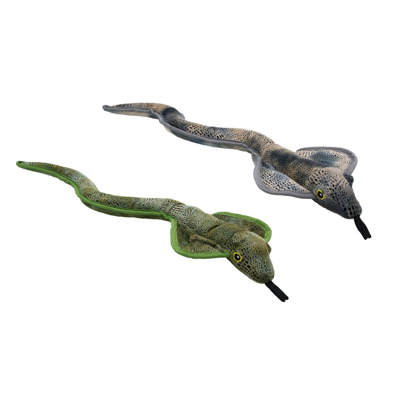 Bichinho de pelúcia da linha ECOLINE, com tecido 100% reciclado no interior e 80% no tecido externo. Pelúcia extra resistente com dupla camada de tecido e costuras reforçadas disponível em cinza e verde. Em forma de cobra de 55cm. Com som interno e também som de papel para maior estimulação. A diversão dos nossos animais de estimação está garantida e ao mesmo tempo cuidamos do nosso meio ambiente.